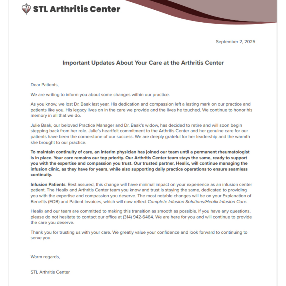 Here at the Arthritis Center we provide our patients with a variety of resources in Bridgeton, Missouri to help them manage their health and wellbeing. From online appointment scheduling to educational materials and support groups, we are committed to empowering our rheumatology patients to take control of their health.